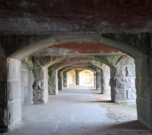 In our quest to see a few lighthouses, we came across Fort Popham, a semi-circular fort made from granite for use in the Civil War. Talk about a boy’s dream – they could run around, hide, and play in a real fort!
