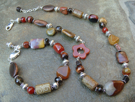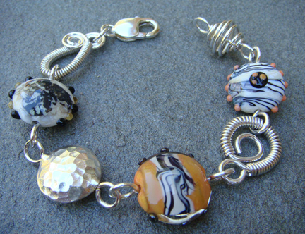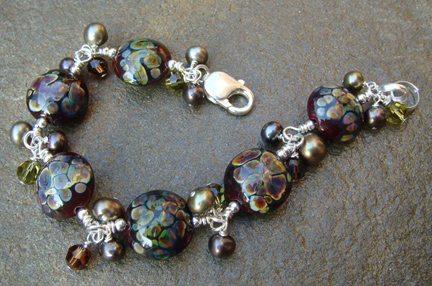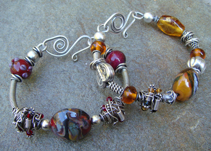 I have been busy creating new jewelry pieces for the show. I’ve had fun working with rich, autumn colors and trying a few new techniques. I was especially happy to incorporate a bead style that I had been wanting to try for some time. Some of you may recognize the “Twisted Tornado” style beads popularized by the artist Lisa Niven Kelly. There’s a bit of everything here from wood and pearls to crystal and glass. Here are a few pieces that I hope to put in the sweet bead studio shop before the show.
