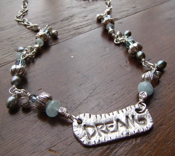 I love that I can personalize the silver and create just whatever I want with it. The sky’s the limit. I would like to make a mother’s bracelet with the names of my 3 children on the links, pendants with inspirational words, toggle clasps, bead caps…………. I know, I know, ONE step at a time!