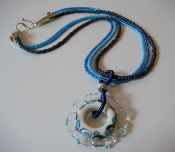 And there is nothing like coming home to find a surprise gift from a special friend….a little something to remind me of the Ocean. Look at those beautiful blues combined with a gorgeous lampwork ring. Thanks, Kerry!
