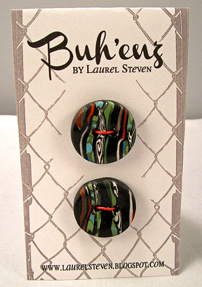 First up we have my friend Laurel Steven’s work. You can see more of her polymer clay pieces and many other creative endeavors on her blog, Rue’s Daftique. Her buttons, finished jewelry, and tutorials can be found in her Etsy shop here.