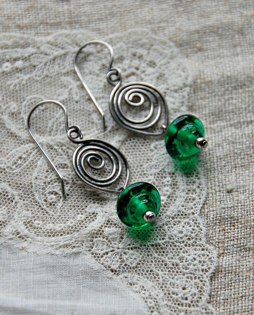 Now on to the earrings….. this first group features Sue Kennedy’s lampwork in olive, green and teal.