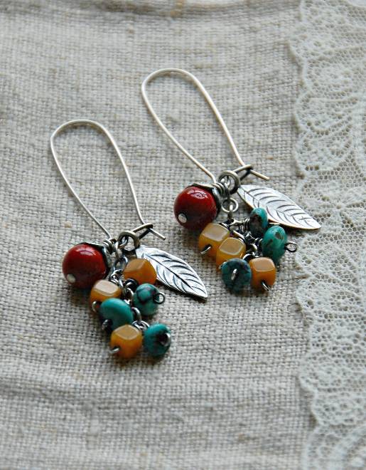 Here I’ve used polymer clay leaf charms by Heather Powers. I’m crazy about the colors she uses in her work.